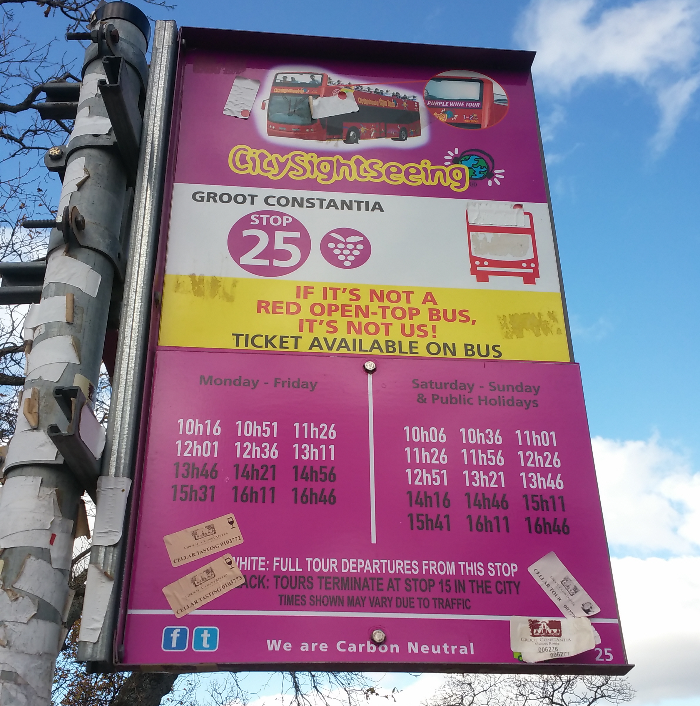남아공 케이프타운에서 느꼈던 것 중 하나가, 안내판이 잘 되어 있다. 특히 관광버스 안내판에는 시간과 안내가 잘 적혀있어서 여행하는데에 어려움이 없겠다 싶었다.